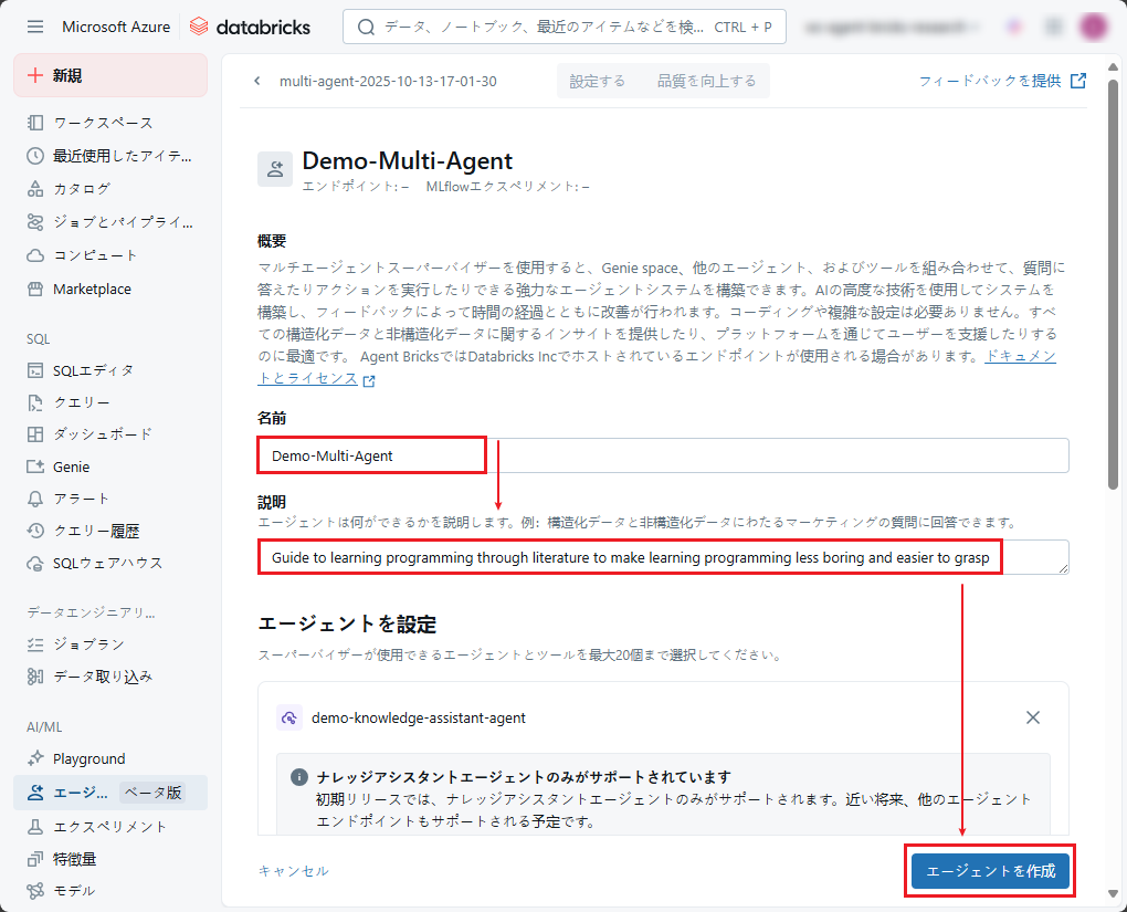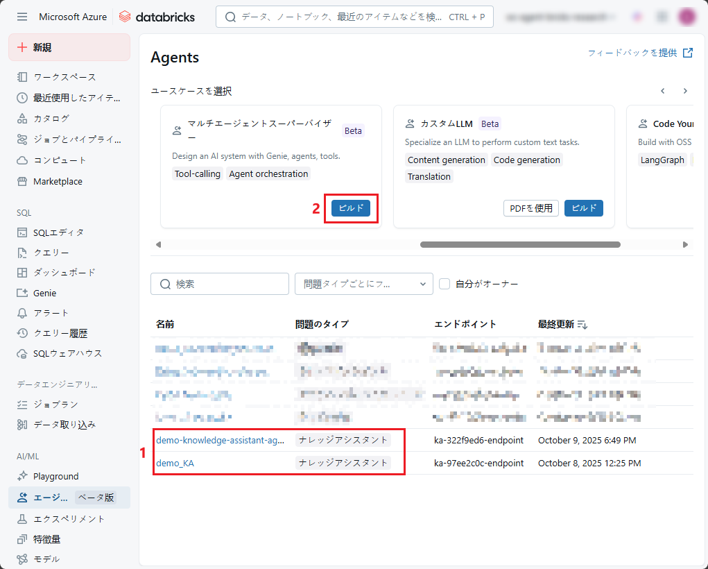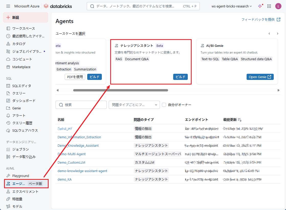 3. Azure DatabricksでのAgent Bricksの利用方法