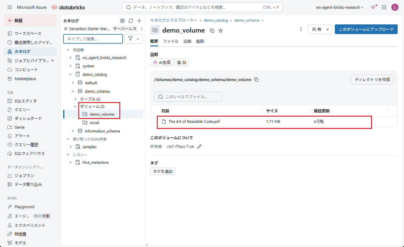 情報抽出したいドキュメントは、Unityカタログのテーブルまたはボリュームに含まれている必要があります。