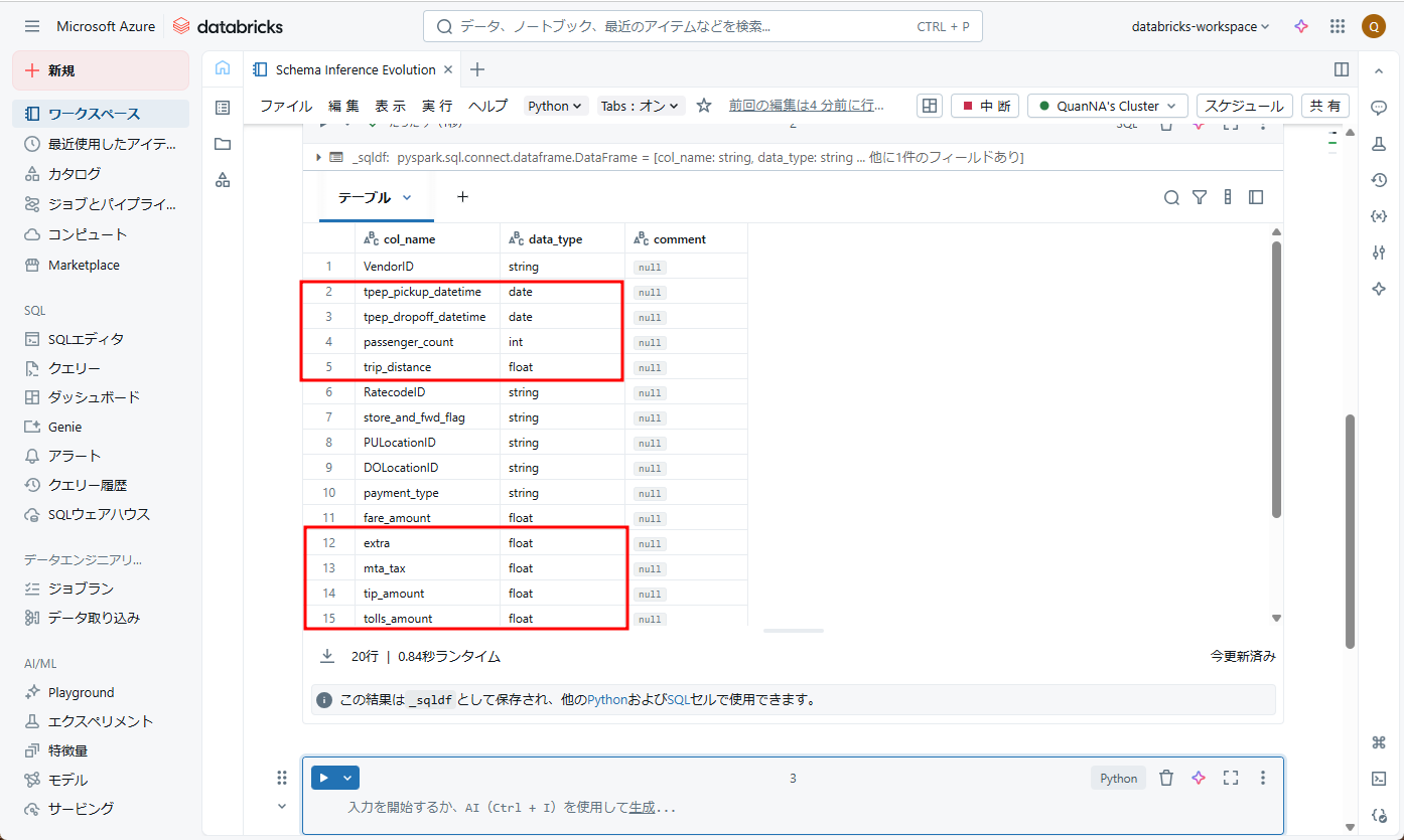 前回のブログでは、Auto Loader を使用して [2020_Yellow_Taxi_Trip_Data] データセットをストレージアカウントからロードしました。今回は、そのデータデットを再利用してスキーマ推論と進化の機能を説明します。
