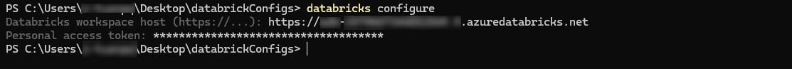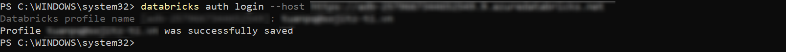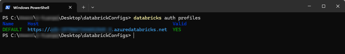 この操作により、.databrickscfg ファイルに設定プロフィールが作成されます。