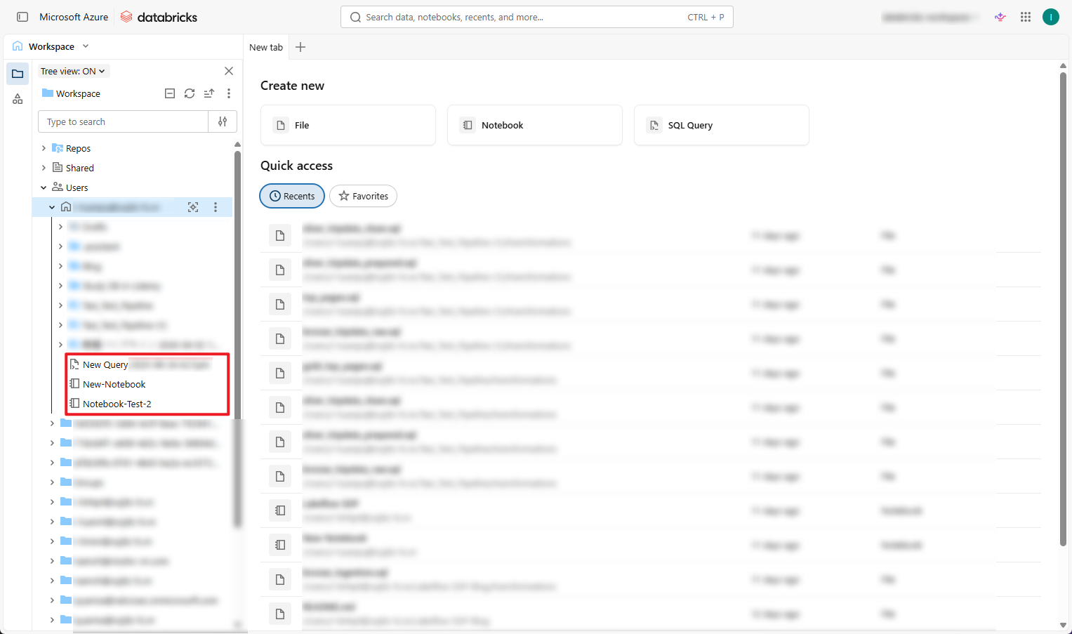 その後、ワークスペース上で確認すると、example Notebook が削除されていることが確認できます。