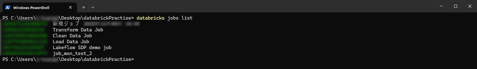 DatabricksのUI(ジョブおよびパイプライン)でジョブの詳細を確認するか、databricks jobs list コマンドで取得できます。