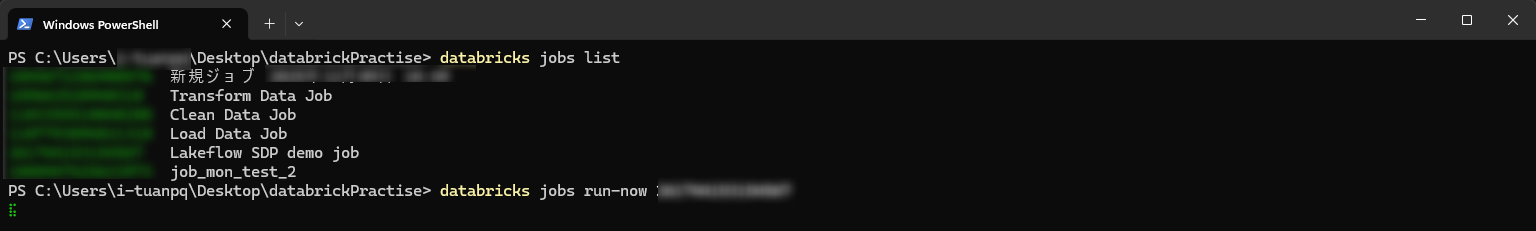 この設定により、CLIコマンドを実行し、Databricks上のリソースを直接操作できるようになります。