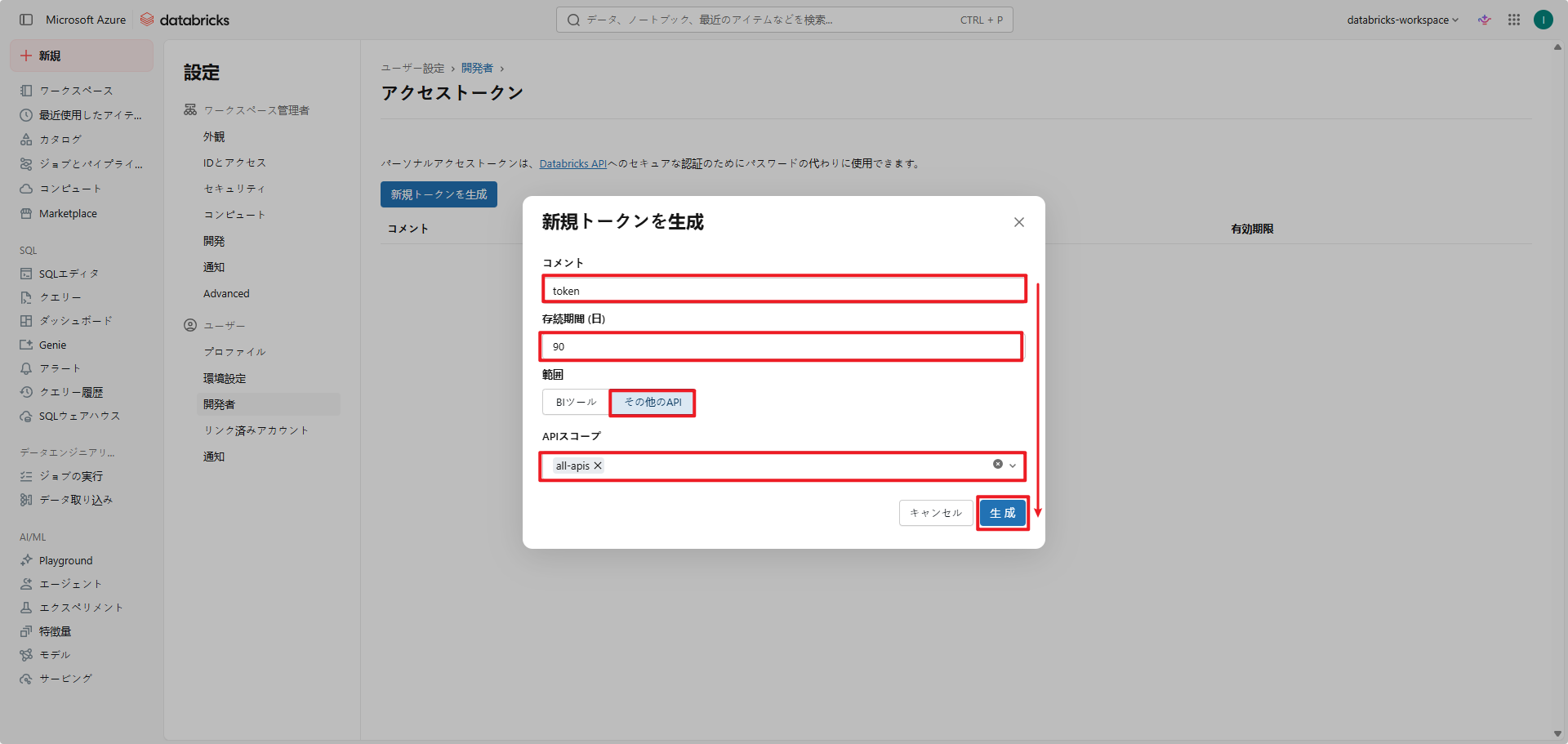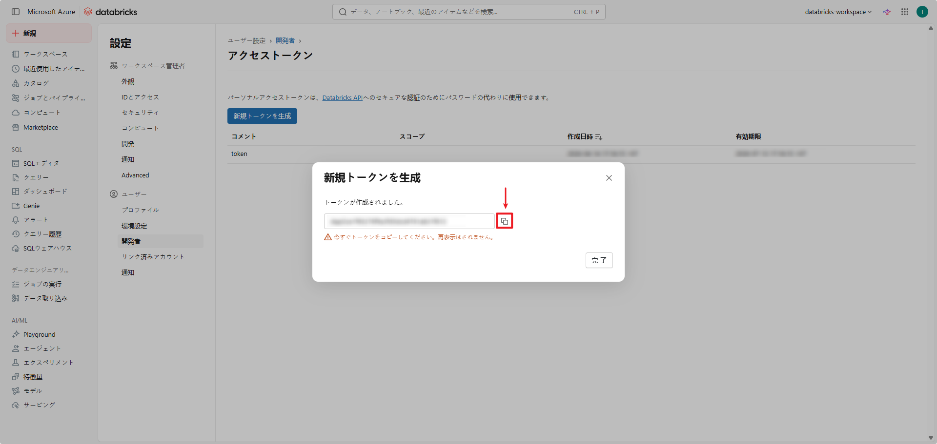 • ここで、 <workspace-url> はワークスペースのURLを指します。