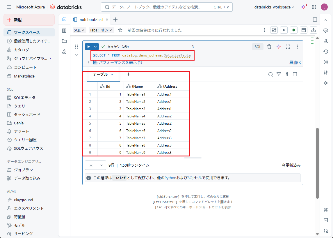 SELECT * FROM catalog.demo_schema.OptimizeTable; |