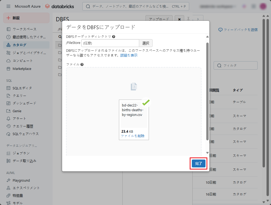 3-1.CSVファイルをDBFSにアップロード
