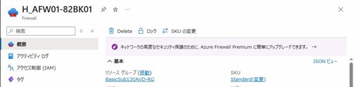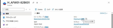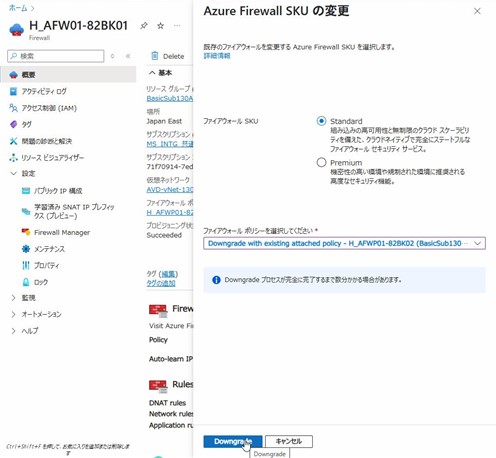 - Azure Firewall のSKUをStandardに変更し、ダウングレードを実行する。