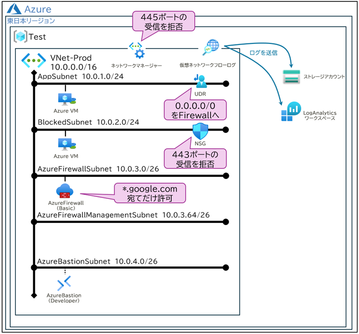 VNet-Prod (10.0.0.0/16) 内に以下のサブネットを構成しています: