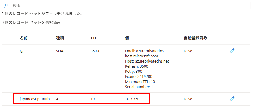 オンプレミスネットワークからプライベートリンクが使用できるように、オンプレミスのDNSサーバーにプライベートリンクのDNSレコードを追加します。